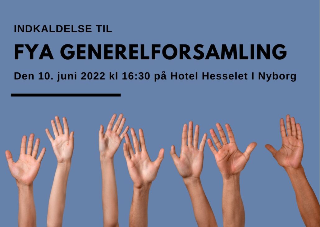 INDKALDELSE TIL FYA ORDINÆR GENERALFORSAMLING 2022 FYA indkalder til ordinær generalforsamling fredag d. 10. juni 2022 kl 16.30-17.45 på Hotel Hesselet i Nyborg. Generalforsamlingen afholdes i forbindelse med FYA Symposium 2022. Billet til symposiet er ikke påkrævet for deltagelse i generalforsamlingen. Dagsorden for FYAs Ordinære Generalforsamling 2022: Valg af dirigent. Beretning fra formand og godkendelse […]